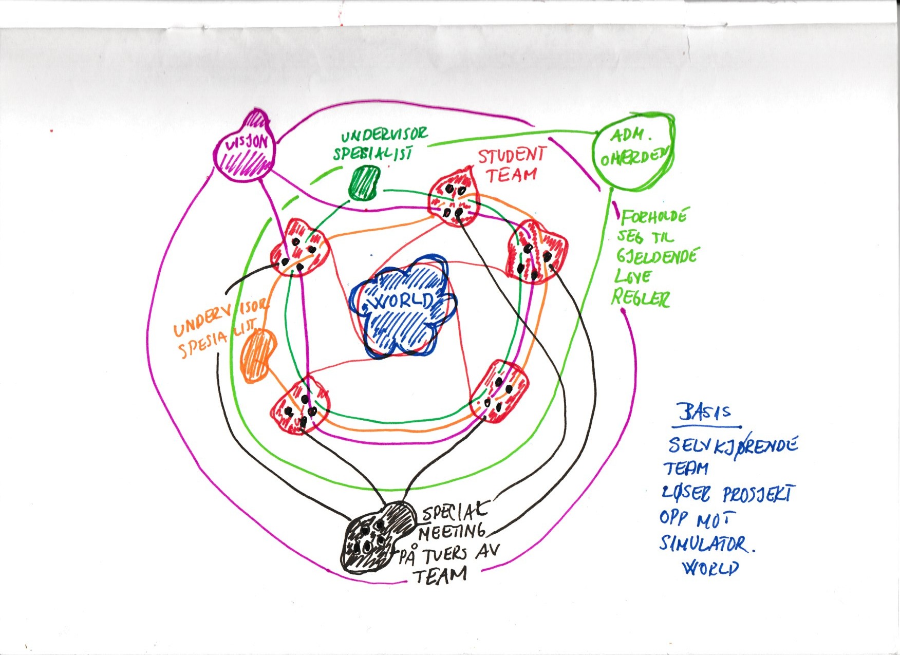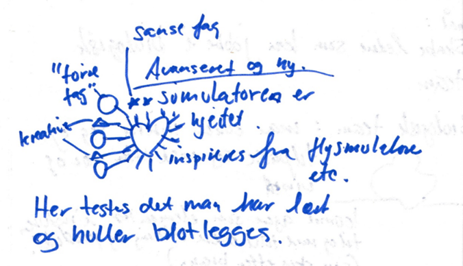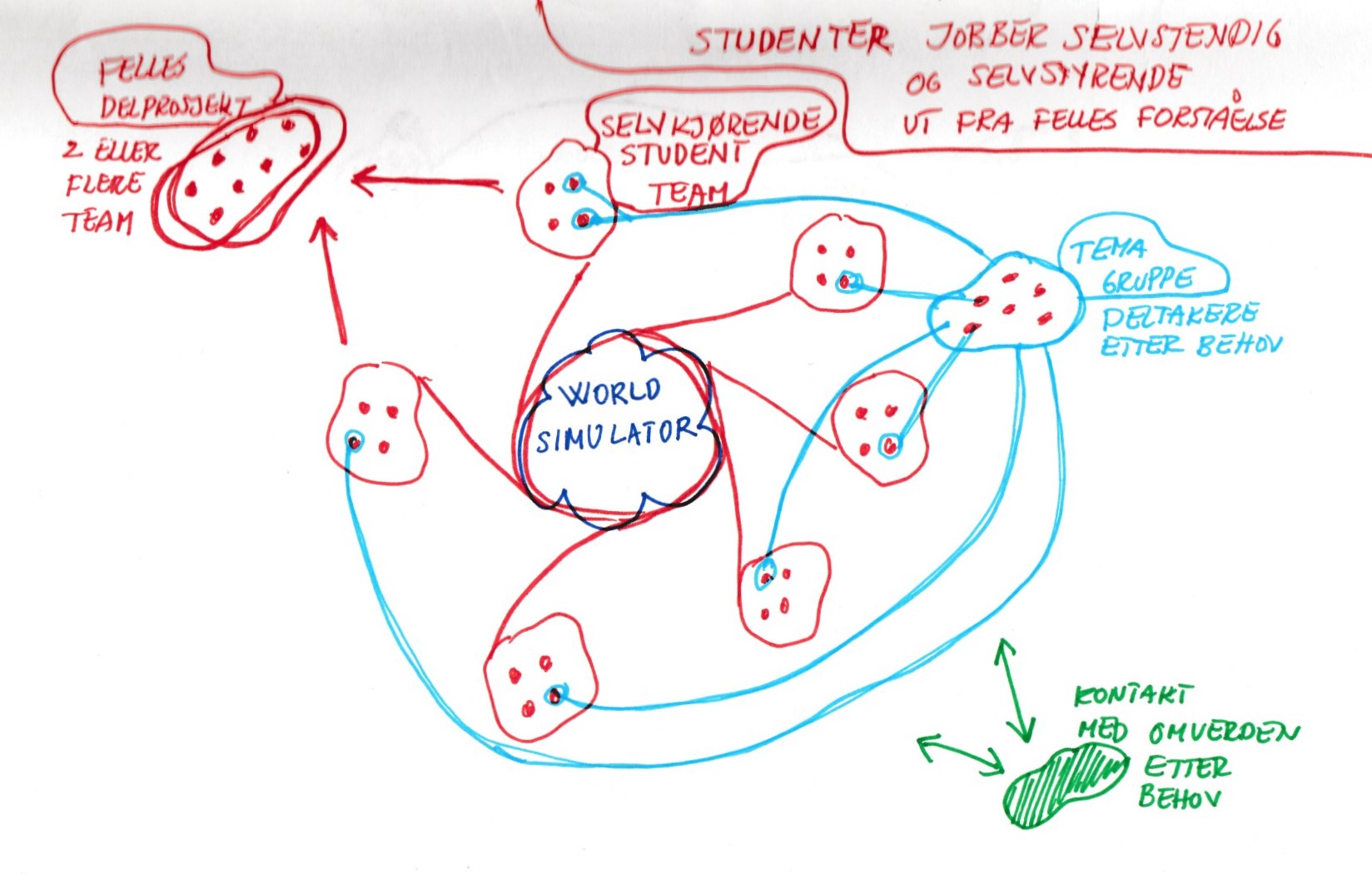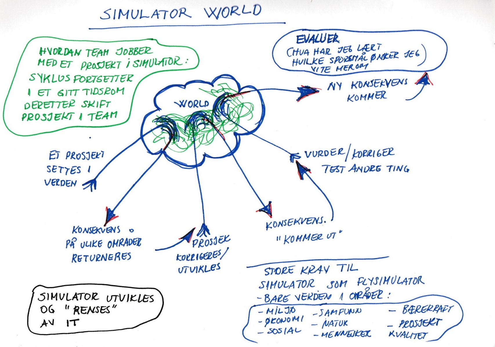 The idea is you "feed" the simulator with your ideas, the description of how you imagine things effectuated. The project shall be further developed according to reaction/feedback. This will demand a great deal of problem solving. You and the group must gain knowledge needed, and figure out how to adjust so the projekt and the simulator come to a result you want. Students are in a flowing conversation with the simulator